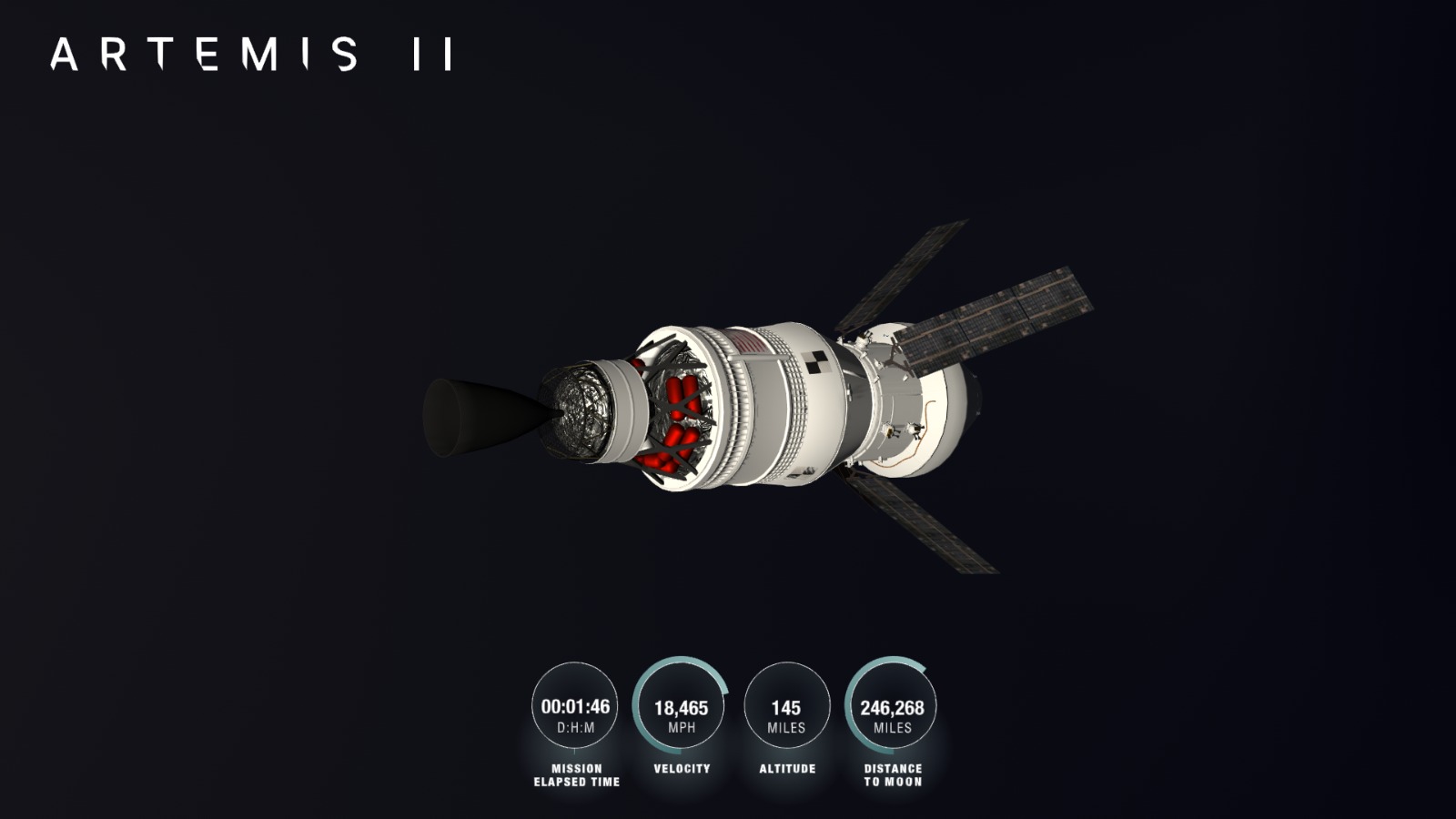 Tras una breve calibración, la aplicación guía al usuario para ubicar la nave en relación con la Tierra. Esta herramienta se activa luego de que Orion se separa de la etapa superior del cohete, aproximadamente tres horas después del despegue.