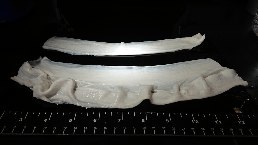 El equipo sembró las fibras con células musculares de conejo y vaca, que se anclaron a la gelatina y crecieron en estructuras largas y delgadas, similares a la carne real. Los investigadores utilizaron pruebas mecánicas para comparar la textura de su carne cultivada en laboratorio con conejo real, tocino, lomo de res, jamón y otros productos cárnicos.