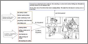 Esos hombres y mujeres eran participantes del Estudio Framingham del Corazón, una iniciativa federal de investigación de larga data que requiere pruebas físicas y cognitivas regulares. Como parte del estudio, realizaron una prueba de escritura antes de que cualquiera de ellos desarrollara la enfermedad de Alzheimer en la que los sujetos deben describir un dibujo de un niño parado sobre un banquillo inestable que se estira para alcanzar un frasco de galletas ubicado en un estante elevado mientras que una mujer, de espaldas a él, no se percata de que un lavabo se desborda.