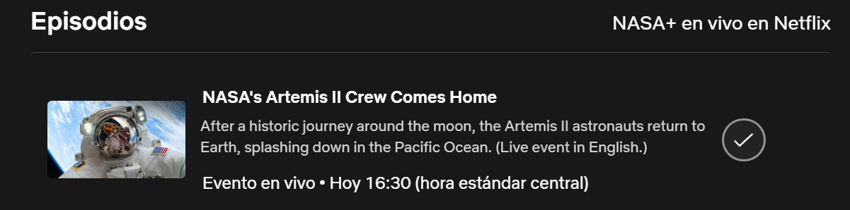 Netflix tiene en su plataforma los momentos más destacados de la misión Artemis II. Ha transmitido en vivo el lanzamiento así com la llegada de la tripulación al punto más cercano a la luna, ahora también compartirá el regreso de la tripulación en esta hazaña.