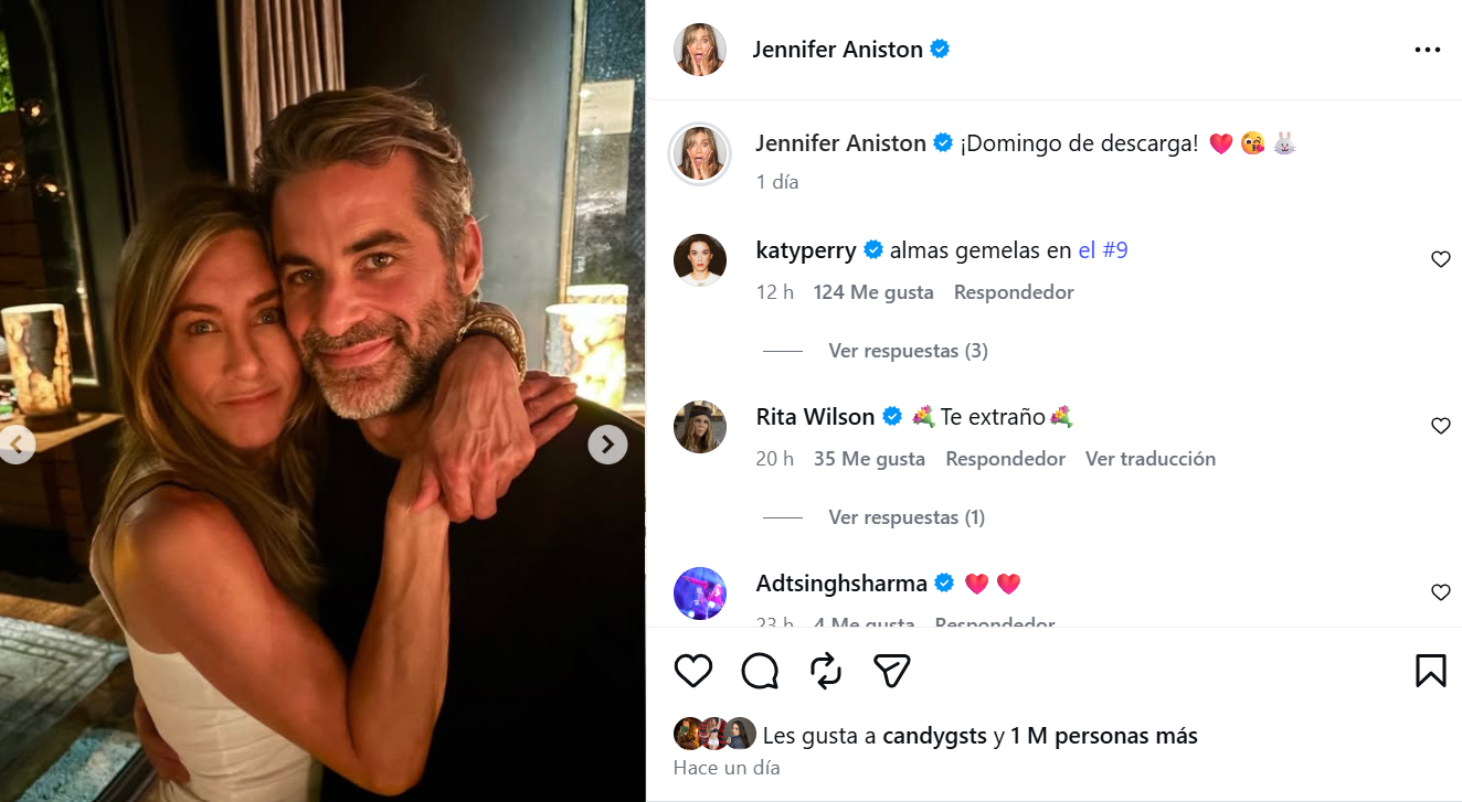 Uno de los comentarios que resaltaron es el de Katy Perry, quien expresó: "Almas gemelas en el #9", el número de imagen en el que se ve a la pareja. La publicación tiene más de un millón de interacciones.