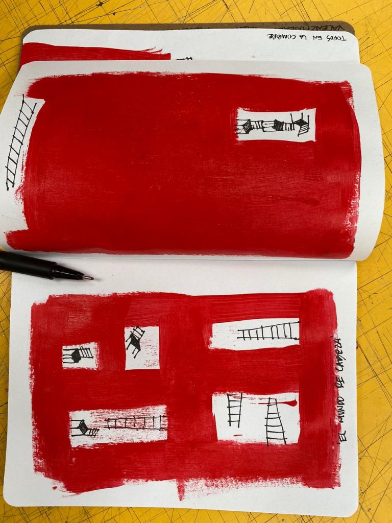 Jonás también describe que regularmente este cuaderno es un objeto muy íntimo donde se encuentran pensamientos muy personales o ideas en bruto que aún les falta mucho trabajo. “Usualmente llevo un cuaderno de bocetos conmigo a todos lados, nunca sabes cuándo la siguiente idea te golpeará como rayo. El que los sketchbooks visiten las galerías y museos de Estados Unidos nos permite compartir nuestra cultura con habitantes de todo el mundo, pero sobre todo que hermanos guatemaltecos migrantes podrán visitar la Biblioteca de Sketchbooks de Brooklyn y encontrar arte guatemalteco”, explica.