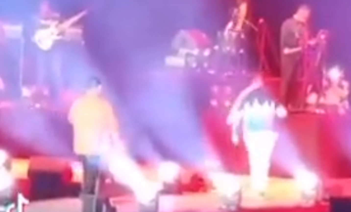 En las imágenes se ve cuando el artista caminaba hacia la parte de atrás del escenario y fue en ese momento cuando se desplomó.