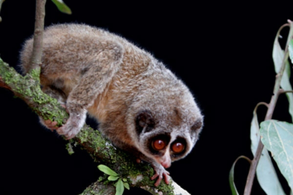 Las imágenes de la criatura nocturna, que está clasificada como en peligro de extinción por la Lista Roja de la UICN de Especies Amenazadas, muestran una cabeza de adulto de ocho pulgadas de largo (la longitud del cuerpo) de un Loris esbelto sentado en una rama del bosque. Se caracteriza por sus extremidades cortas y largas, y pelaje denso.