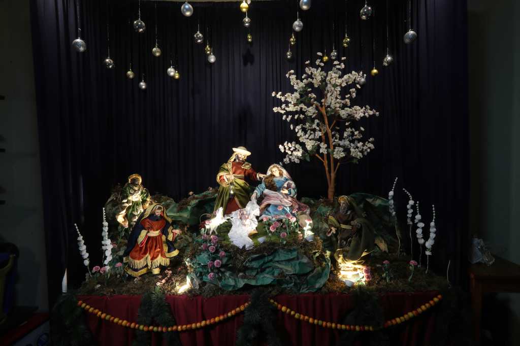 La familia Hernández Ramírez busca conservar elementos clásicos e integrar tecnología actual en su nacimiento, ganadores del segundo lugar. (Foto Prensa Libre: Érick Ávila)
