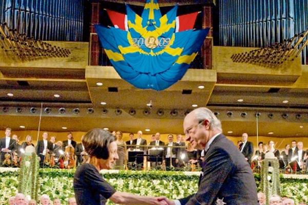 La escritora, nacionalizada alemana, recibió el galardón de manos del rey Carlos XVI Gustavo de Suecia en una ceremonia en Estocolmo.