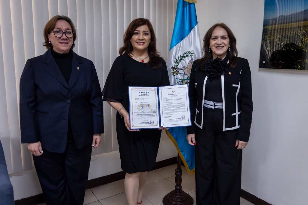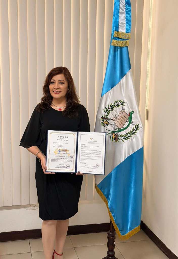La guatemalteca Dania Aguirre recibió una mención como maestra mundial en bellas artes y artes visuales, al ser oficialmente acreditada como miembro del World Masters Committee, de la World Master Association.