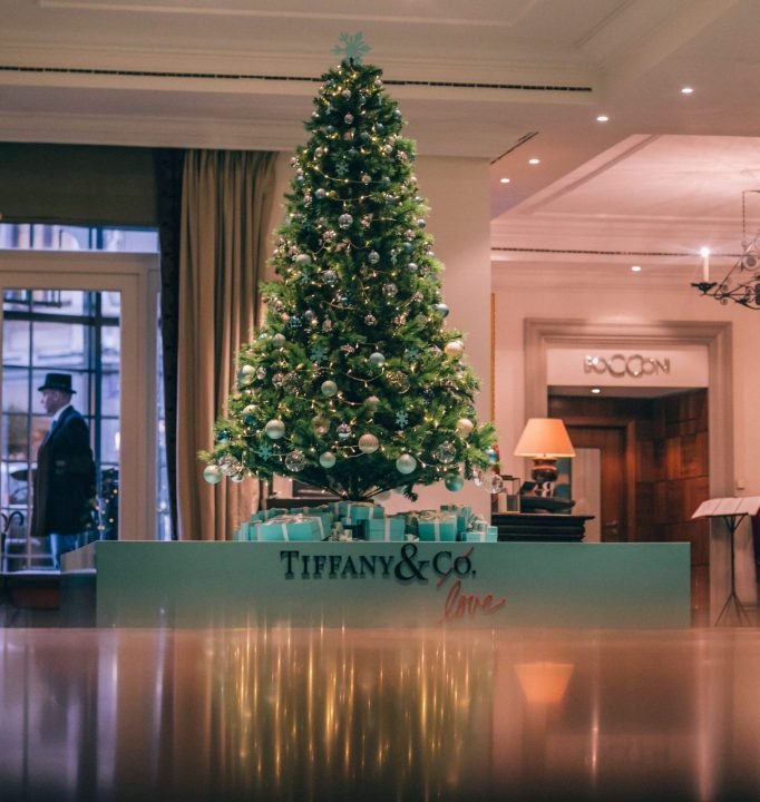 La protagonista de la famosa película Breakfast at Tiffany’s, Audrey Hepburn nació en Bruselas, en donde se ubica este año el lujoso árbol de Tiffany & Co. (específicamente, en el Hotel Amigo, ubicado en el corazón de la ciudad). Al llegar, lo primero que verán los huéspedes será el majestuoso árbol con decoraciones en su distintivo color Tiffany.