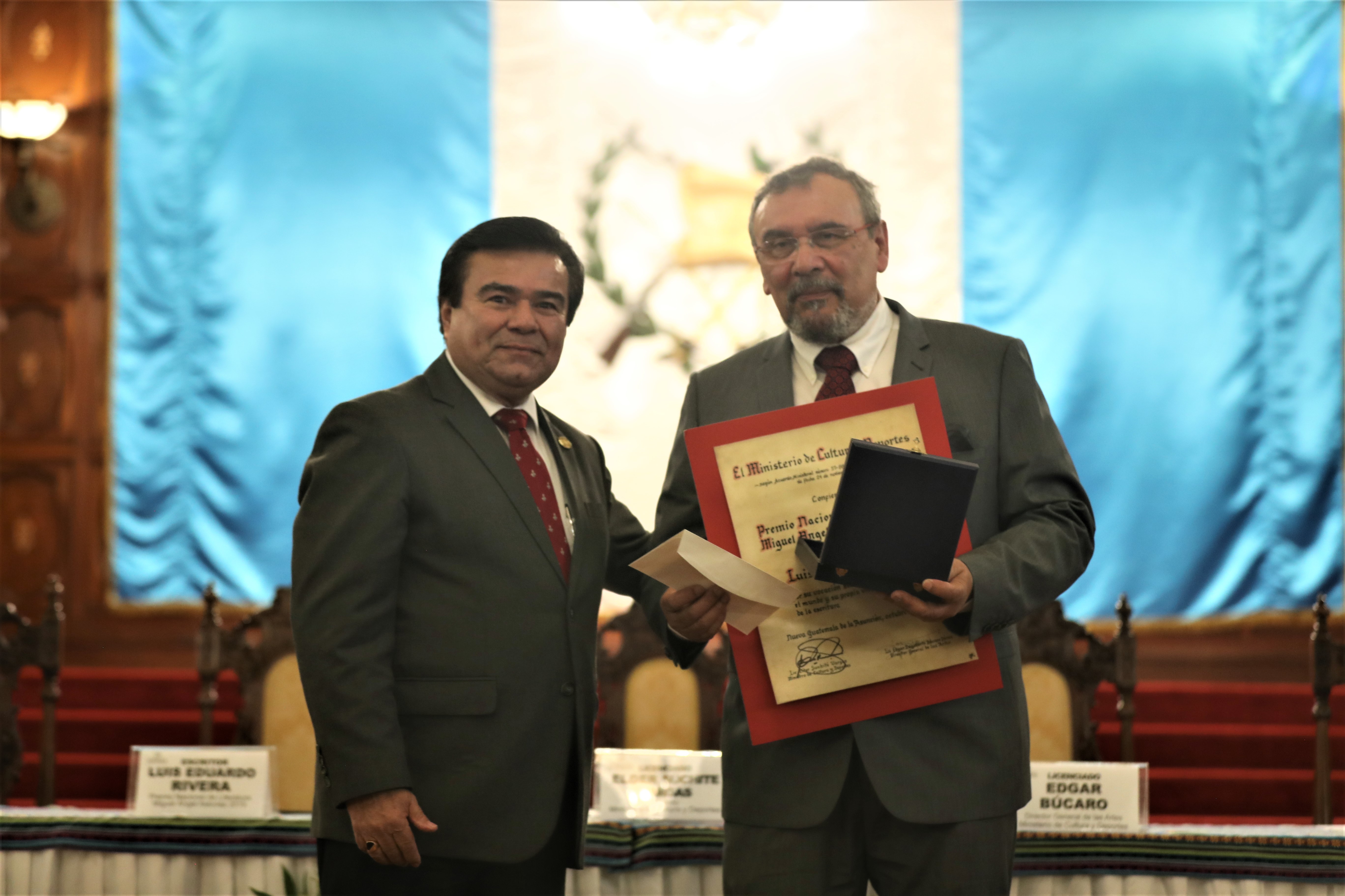 Durante el acto de entrega, Elder Suchité Vargas, Ministro de Cultura y Deportes comentó que el escritor “en cada una de sus obras nos deja leer su esencia y su pasión… un testimonio de vida”.