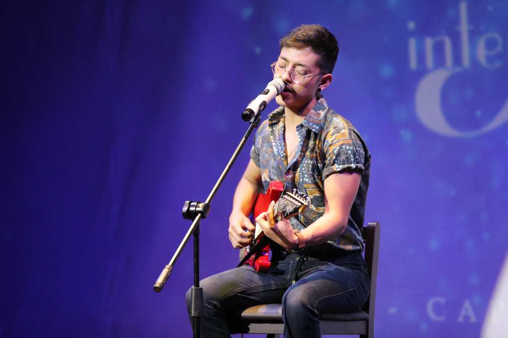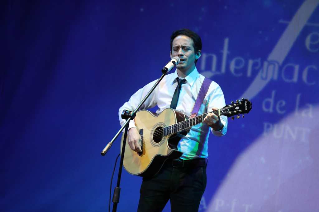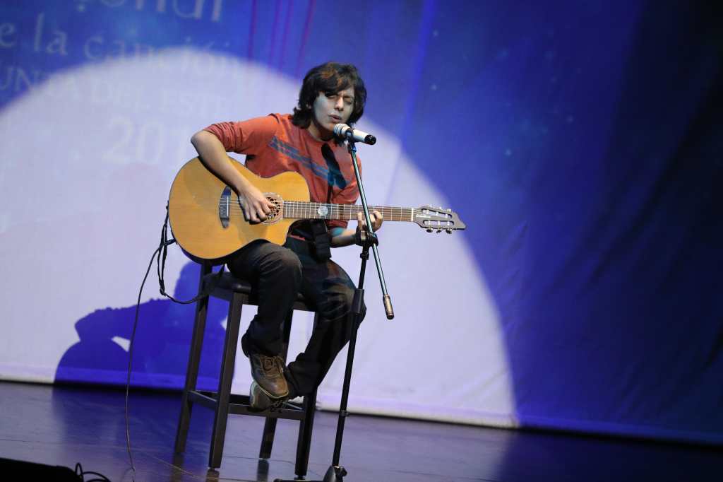 Aguilar cantó dos temas de su autoría, en las que demostró su convicción total por la música, que demuestra a través de su voz y su guitarra.