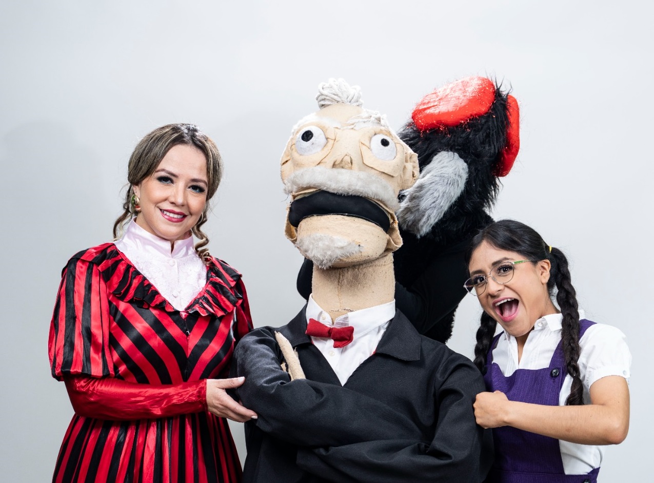 Elvira, Tribulé y otros personajes de esta obra de teatro harán reír a las familias, pero también reflexionar. (Foto Prensa Libre: La Maleta Producciones)