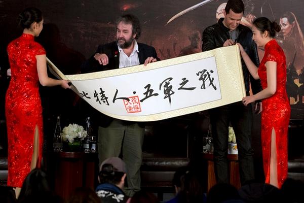 Acompañado de Armitage (que interpreta al enano Thorin en la trilogía) y de Philippa Boyens, una de las guionistas de estos filmes, el director neozelandés recibió una caligrafía china de regalo en el preestreno y se mostró emocionado cuando le contaron que en China es apodado “Peter el Grande” por sus fanes.