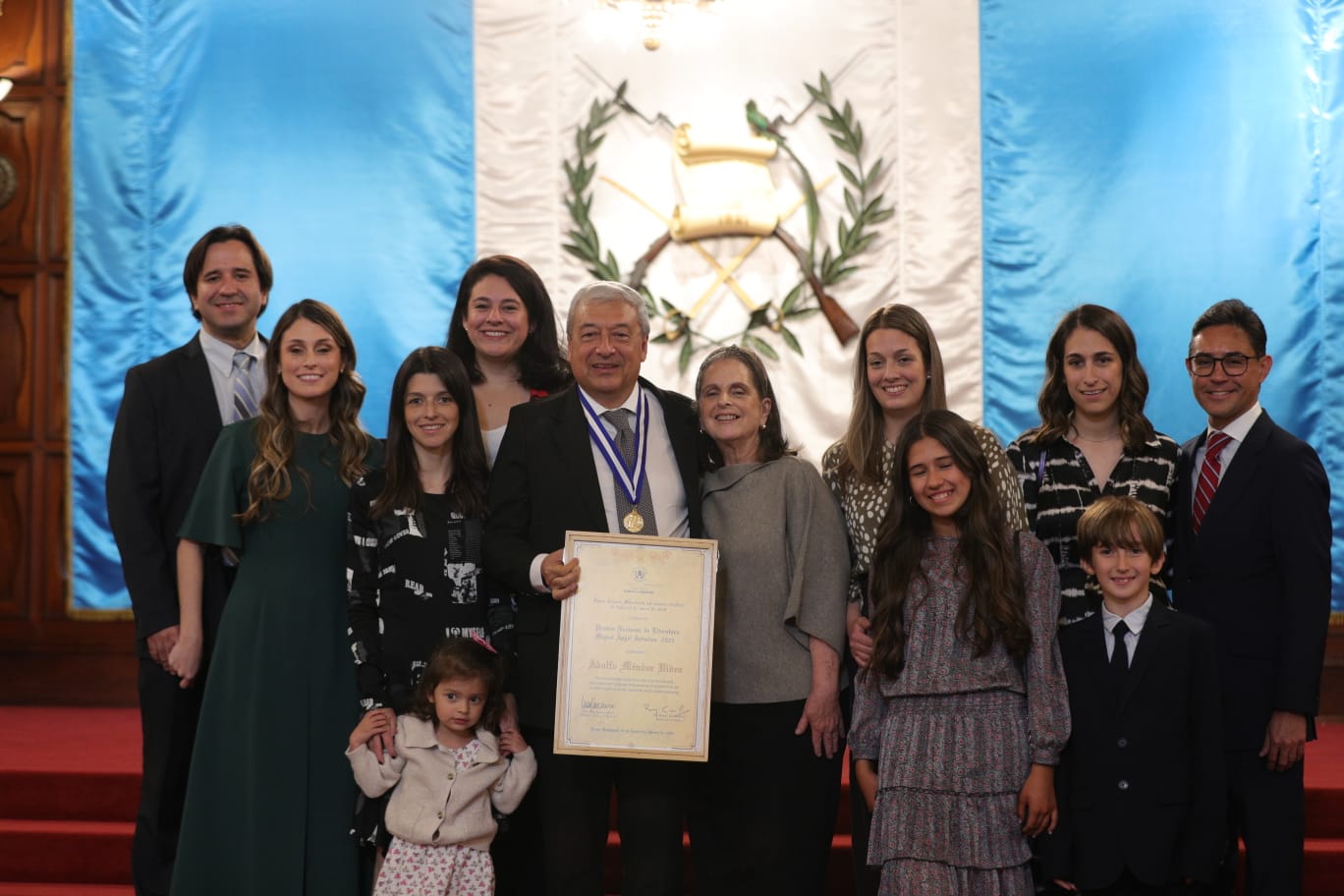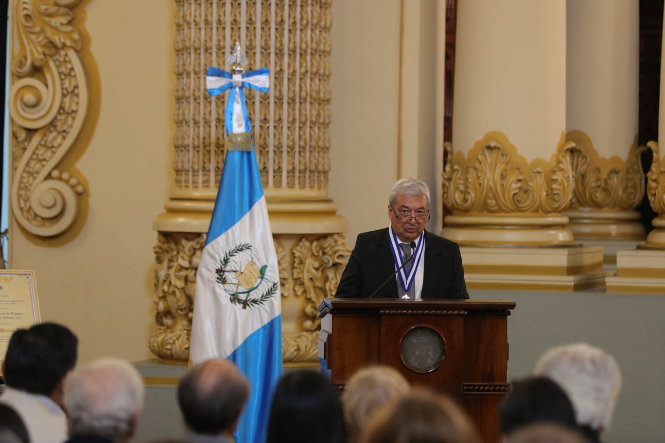 El Salón Banderas se convirtió en el escenario donde se entregó el Premio Nacional de Literatura, Miguel Ángel Asturias 2025, a Adolfo Méndez Vides.