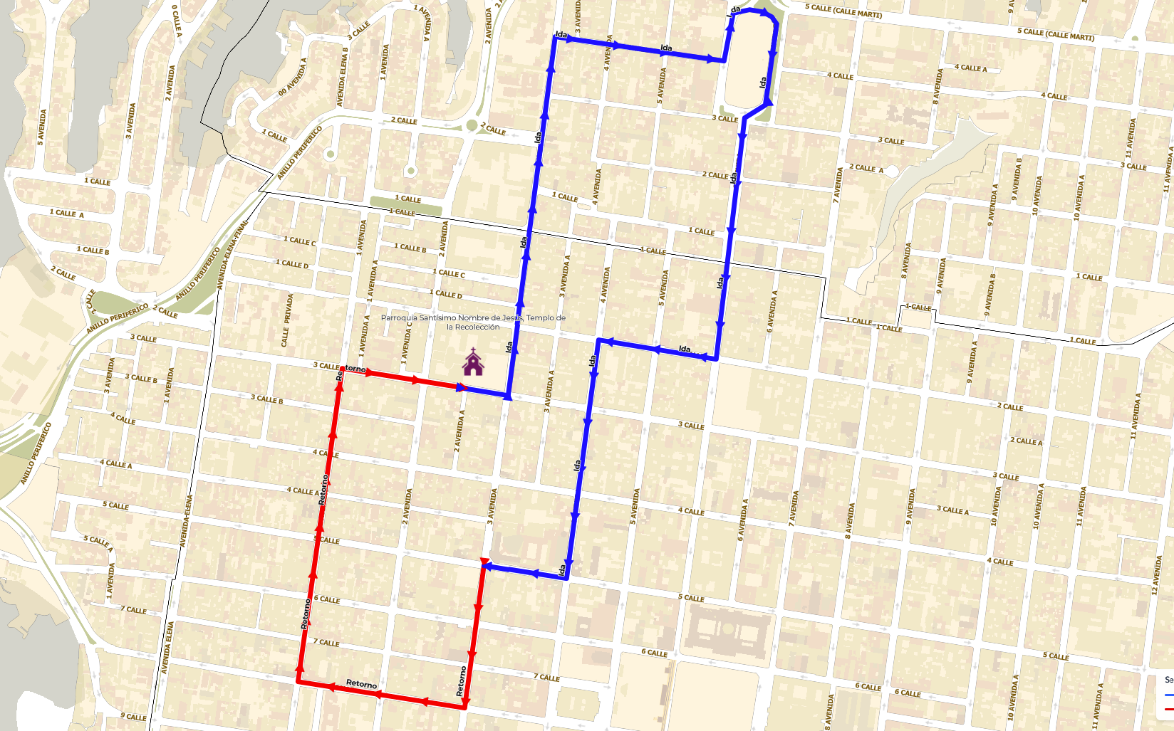Recorrido de la Procesión de Jesús Nazareno de la Justicia. (Foto Prensa Libre: Cortesía Municipalidad de Guatemala)