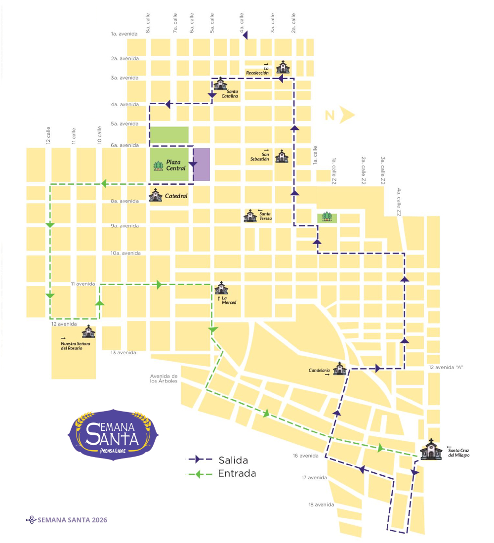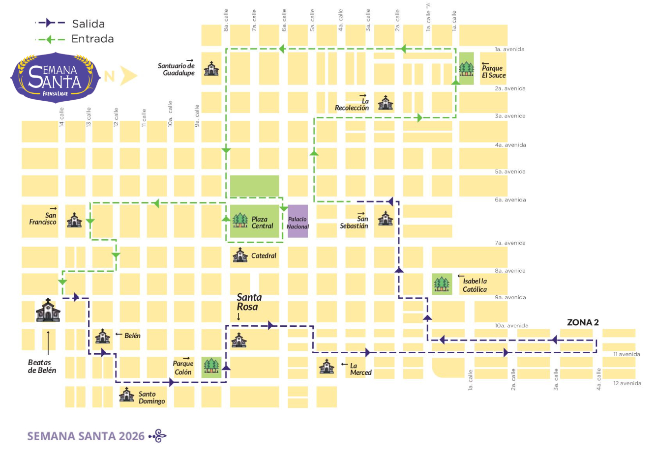 Desde la procesión de Jesús de las Palmas, de la Rectoría San Miguel Capuchinas, hasta la de Jesús Resucitado, de la Parroquia Santísimo Nombre de Jesús, templo de la Recolección, marcarán en la Ciudad de Guatemala este tiempo litúrgico. Estos son los recorridos programados para la Semana Santa en la Ciudad de Guatemala.