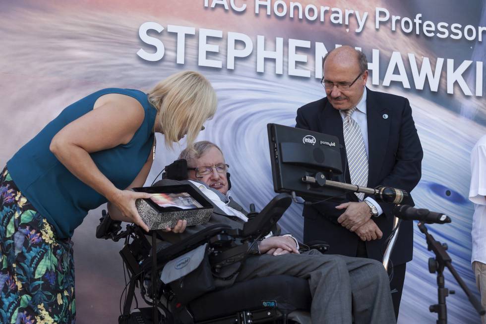 El físico británico Stephen Hawking junto al director del Instituto de Astrofísica de Canarias. (Foto Prensa Libre: EFE)
