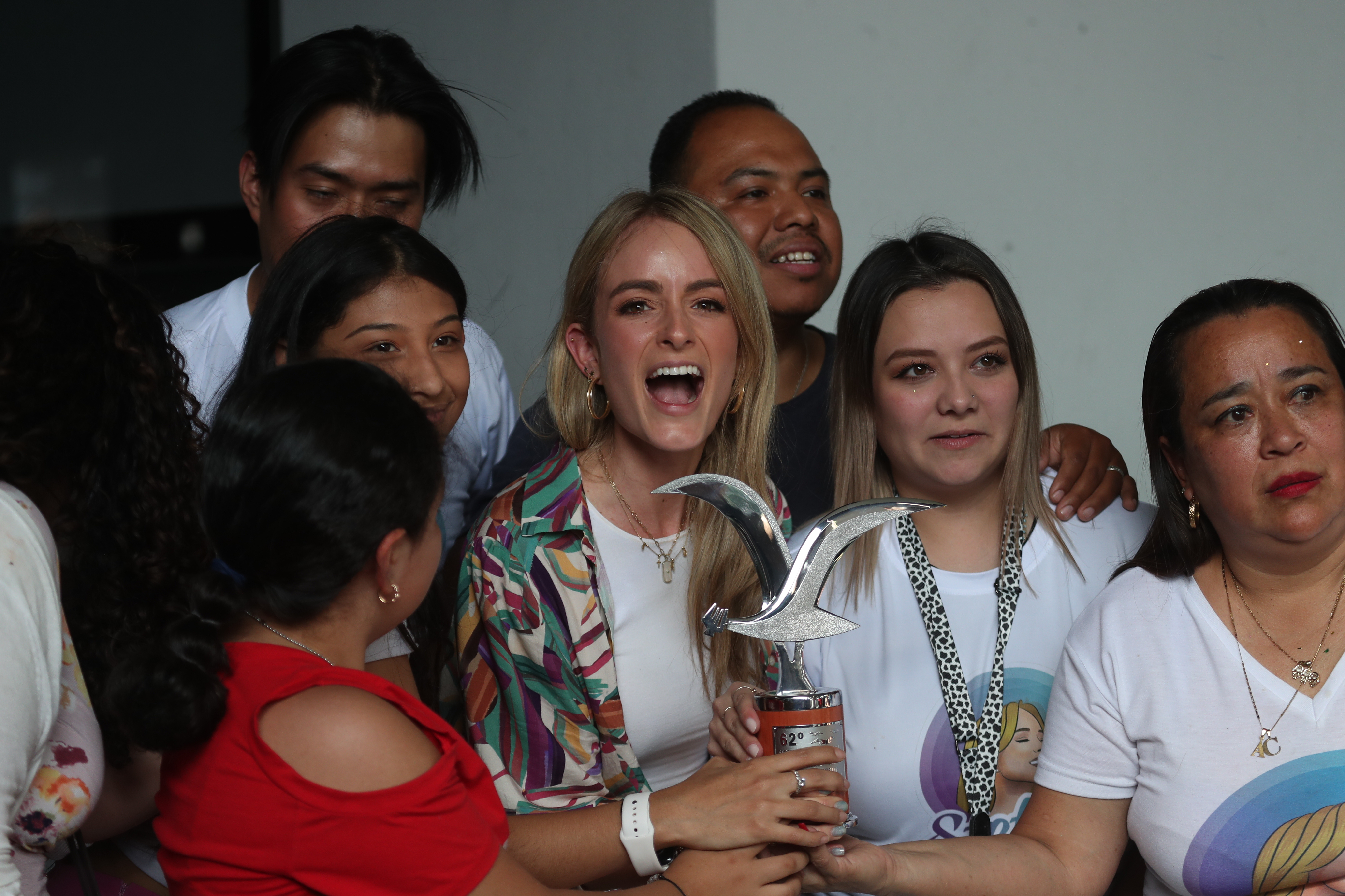 Todo el equipo de producción del programa estaba emocionado con la visita, la llenaron de regalos especiales como una muñeca de globos que la representaba con su galardón, un arreglo de flores y el diploma que la acredita con el premio Valor, Logro y Mérito, VLM, que esta telerrevista otorga cada año a figuras de organizaciones o personajes que transforman Guatemala, entre otros obsequios para la cantante.