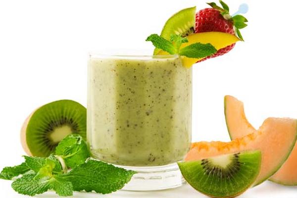 1) En la licuadora combina el jugo de manzana, el melón y el kiwi. Cierra bien la licuadora y licúa hasta que toda la fruta se deshaga.