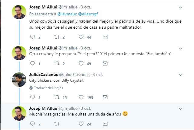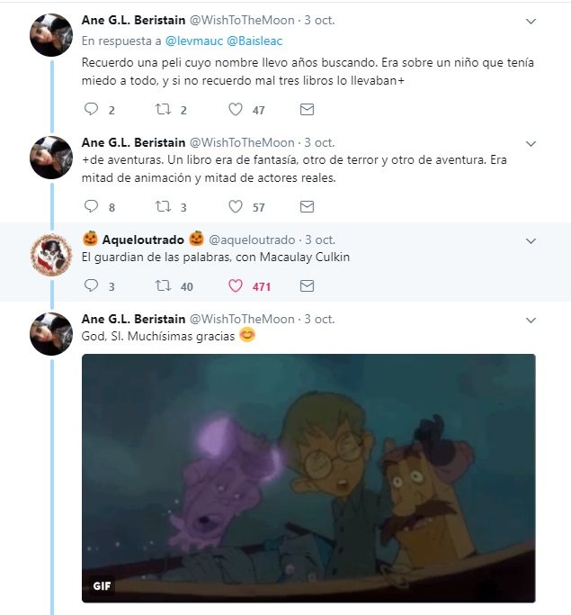 “A veces se recuerdan escenas concretas o actores que aparecen en la película, pero se olvida el título y lograr dar con él solo con los pocos detalles que se tienen en mente es complicadísimo. Así que pensé en poner a prueba a Twitter”, explicó el joven.