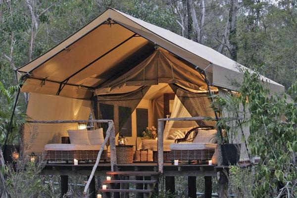 La práctica de esta nueva forma de hacer turismo surgió a comienzos del siglo XX con los viajeros ricos de Europa y de América que iban a acampar a África sin renunciar a su lujoso estilo de vida, alojándose en campamentos que les ofrecían las ventajas y comodidades a las que estaban acostumbrados.
