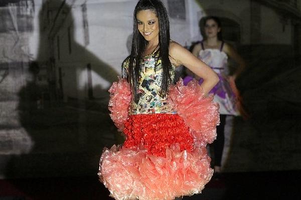 Las modelos lucieron vestidos de fiesta de plástico blanco, negro y celeste; sacos y faldas tejidos con papel y los típicos trajes de la cholas bolivianas, compuestos de polleras, blusas y mantas de coloridos papeles, entre otros diseños.