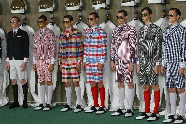 Los trajes, con sus ligeras americanas sobre etéreos jerséis o directamente sobre la piel, con pantalones largos o bermudas, fueron pieza clave del desfile, junto con enormes zapatos de plataforma.