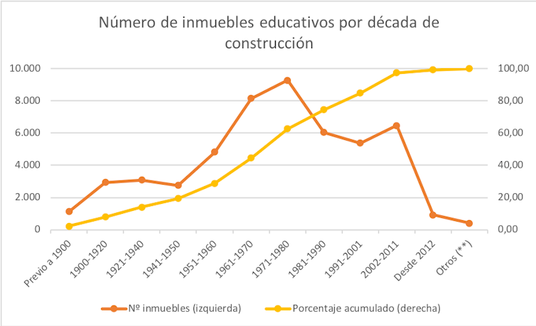 Entre el 90 y el 95 % de estos edificios se construyó antes de la citada normativa (2006), que promovió exigencias efectivas en ventilación, calidad del aire y confort interior. Un 60 % de estos centros se creó antes de que existiera ninguna normativa relacionada (1980).