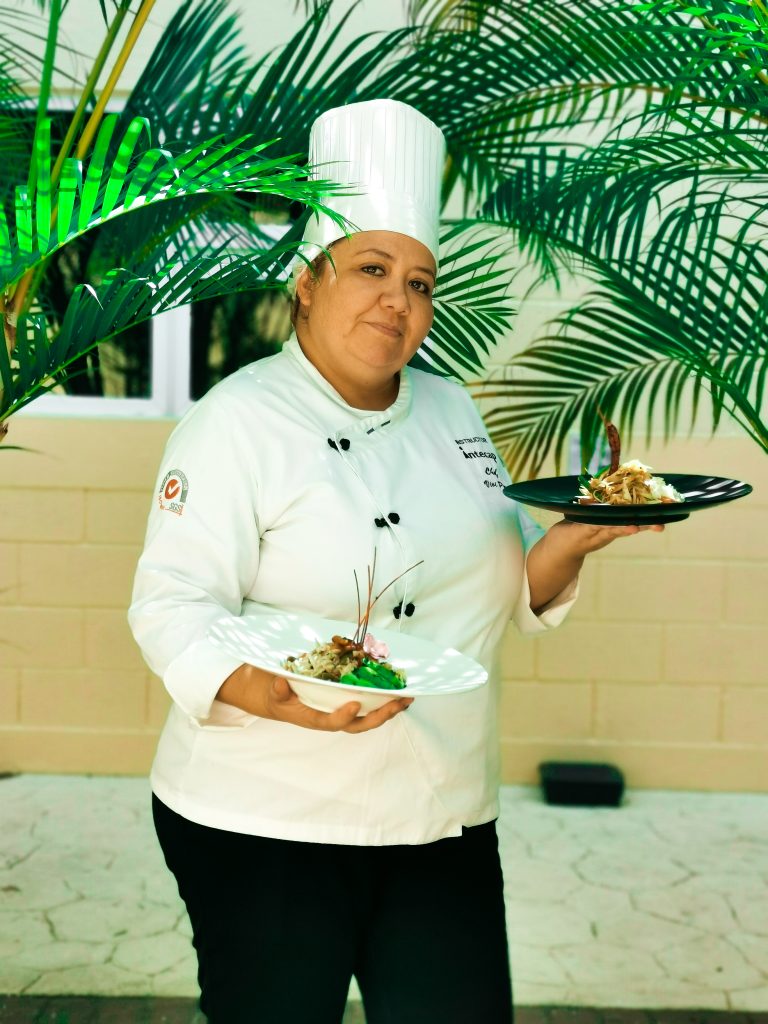 - Vivian Pérez es instructora del Intecap. Se graduó de la sede en Petén como cocinera profesional y tiene una certificación de chef internacional.