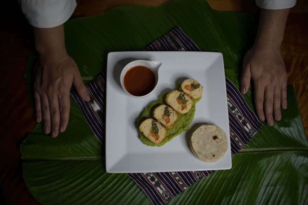 “El kix’tan es una hierba local de la Costa Sur, con un alto valor nutricional, y el tacazonte, que me encanta por su sabor y propiedades, es un pez del Pacífico, con colágeno y lípidos muy característicos. En los últimos años he procurado impulsar el consumo de productos como estos, pues la gastronomía de la provincia es muy diferente a la que se presenta en la ciudad capital”, indica. “Entre estos alimentos está el kix’tan, chaya, ixpulula, wux’nai, hojas de chiltepe, flor de chipilín y flor de pito, ricas en micronutrientes y de bajo costo. Por otro lado, prefiero una pesca local a importar un salmón”, añade.