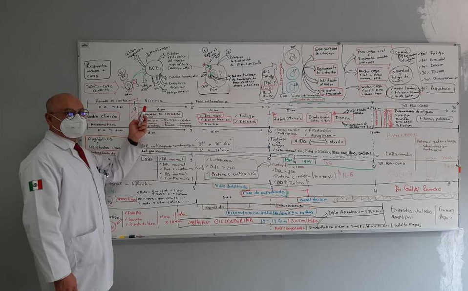 El especialista contó a Milenio que el covid-19 tiene varias fases: “La primera fase es cuando el virus se empieza a replicar en tu cuerpo y sientes como un catarrito, algo muy leve; sin embargo, de 5 a 7 días después comienza la inflamación y en las personas que se ponen graves es muy difícil detenerla.