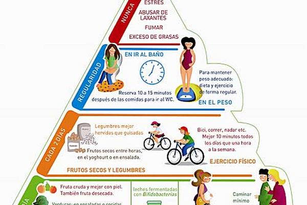 El tercer eje de la nueva pirámide se basa en respetar los horarios de las comidas y en adquirir el hábito de ir al baño cada día siempre a la misma hora. Dedicar entre diez o quince minutos después de las comidas para ir al WC, en un ambiente relajado, se convierte en una sana rutina para un buen tránsito intestinal.
