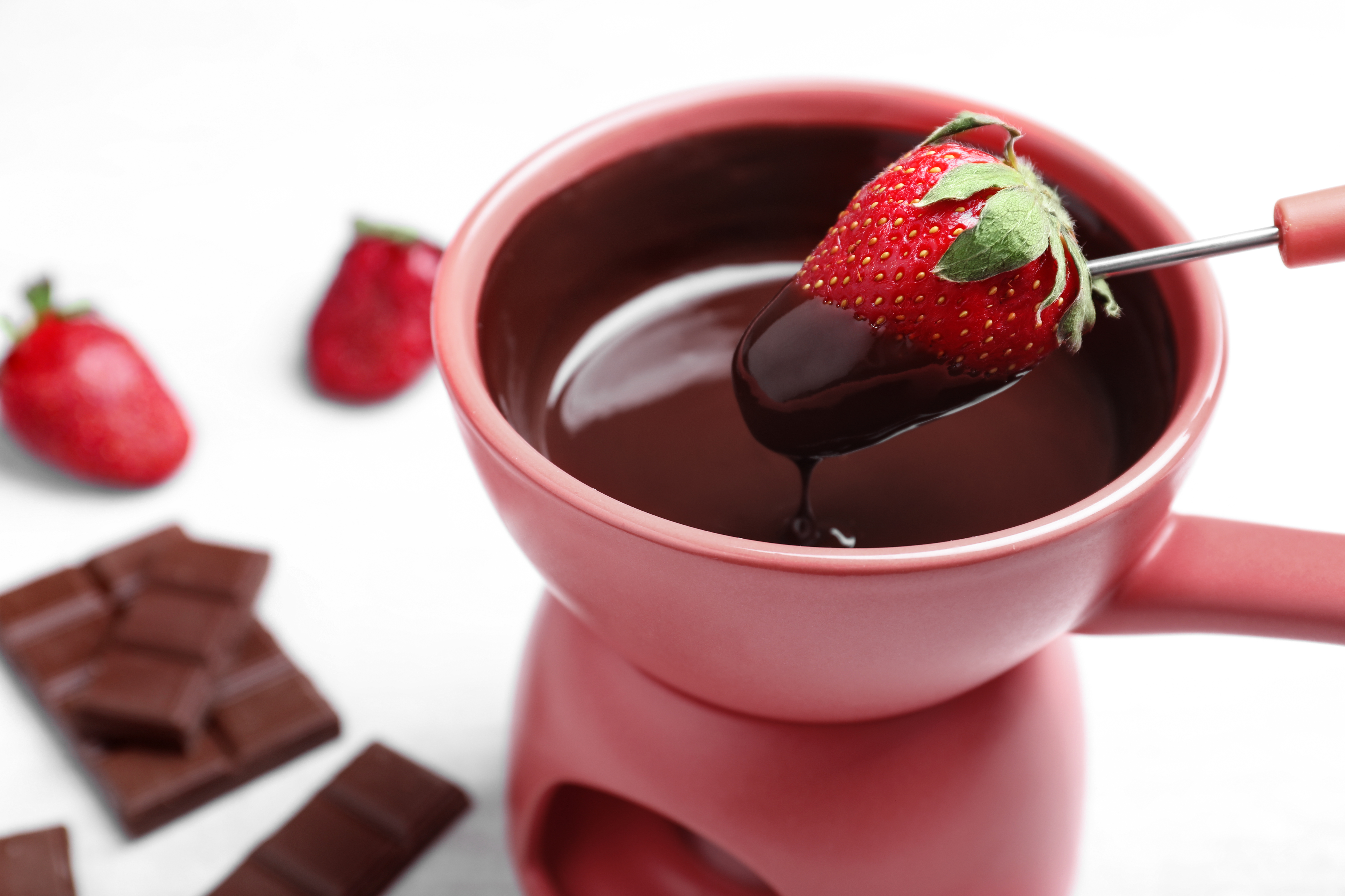 - Coloque la fruta en pinchos para fondue y remoje en el chocolate.