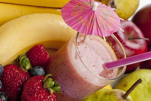 1) Pela los bananos y córtalos en trozos. Coloca los bananos, las fresas congeladas, yogurt y leche en el recipiente de la licuadora.