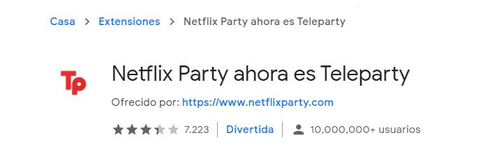 Permite ver televisión de forma remota con amigos. Antes con Netflix Party solo era posible ver el contenido de Netflix, pero ahora cambió de nombre a Teleparty y en la versión 2.0.0 también funciona con Disney, Hulu y HBO (también HBO Max y HBO Now.