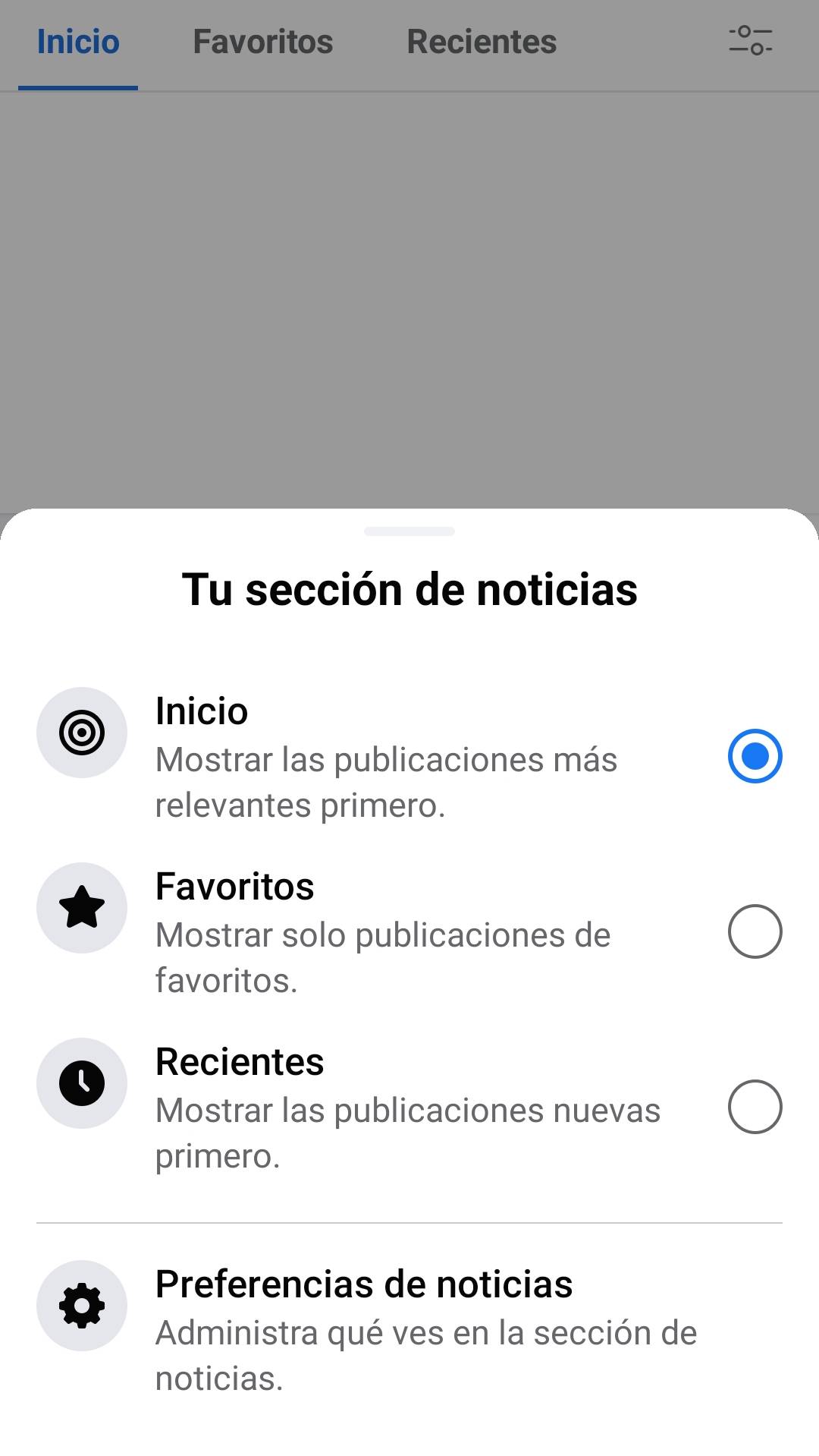 Si se elige la primera opción, “Inicio”, el internauta seguirá viendo los contenidos como hasta ahora, elegidos por el algoritmo en base a sus supuestos intereses y gustos a partir de su historial de navegación en la plataforma, un sistema que cada vez recibe más críticas por su potencial para crear burbujas sociales y reforzar la polarización política.