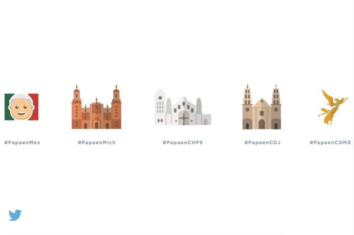 Además de esta etiqueta general, cada sede que el papa visite tendrá su emoticones emblemático de la ciudad. Por ello, quienes hagan un tuit con las etiquetas oficiales verán automáticamente los emoticones exclusivos.